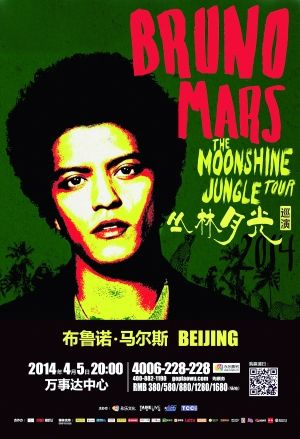“火星哥”去年启动了“丛林月光”巡演,现已在全球超过90个城市开唱,几乎每一站的门票都引起抢购热潮。“丛林月光”此次来到中国内地仅设北京、上海两站,4月5日“火星哥”将登陆北京万事达中心,将精彩的表演呈现给北京观众。