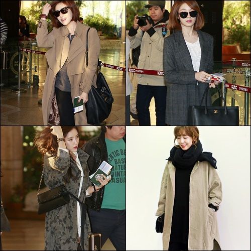 平常爱穿简约自然风格的T-ara,当天在机场也展现了简约干练的着装,就像意识到变冷的天气,纷纷以风衣与大衣完成了时髦装束。智妍着格纹大衣打造帅气的范儿,恩静则以宽松风衣增添了自然风采。