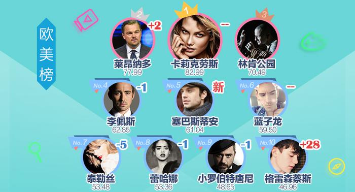 欧美榜:超模卡莉克劳斯蝉联冠军