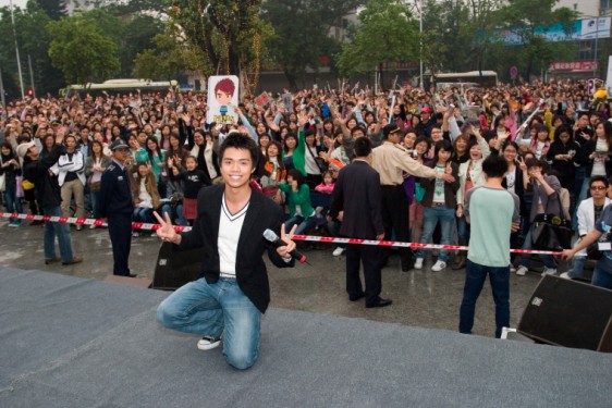 第二天3月26日,轩仔又赶赴中山假日广场,参加由中山广播电视台fm88.8旅游环保之声主办的中山歌迷见面会,轩仔说以前曾经几次到中山举办签唱会,中山歌迷都对他很热情。而这次当然也不例外,在假日广场外广场的轩仔签唱会舞台前,足足围了一千多歌迷。而这次签唱会依然有好友王菀之担任轩仔的表演嘉宾,就连她也对轩仔的超高人气感叹不已。轩仔面对中山歌迷的热烈回应,特地把原定演唱的四首歌加到五首回馈歌迷的支持,恰逢临近西方的复活节,当天活动中还有四只由小朋友装扮成的小白兔上台鲜花给轩仔和Ivana,场面相当温馨哦。