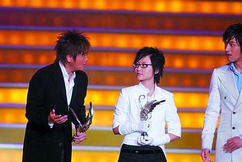 参加昨晚颁奖礼的艺人众多,但还是没有看到太多大牌的身影,其中韩国“舞王”张佑赫已算是够分量的艺人。而去年的超女李宇春则因为公司宣布专心做专辑,她早早地挂上了免战牌。当晚走上星光大道的艺人有孙燕姿、飞儿、柯有伦、李玖哲、方文山、羽·泉,黄征、李泉、汪峰、王蓉等数位,不仅参与人数减少,而且“星光程度”相对平庸。其中有人气爆炸感觉的除了张佑赫之外,还有周笔畅和其他五位超女,既然李宇春不来,周笔畅理应拿奖、更理应获得更多掌声和欢呼。昨天出场的周笔畅,身着一身白色小礼服携身穿黑色西服的陈柏霖,一露面就迎来“笔迷”尖叫,衣着整齐并且都戴上黑框眼镜的笔迷们齐声呼唤口号,周笔畅便对大家挥手致意。最终,内地最受欢迎女歌手奖被其收入囊中,之前还是在拿“人气奖项”的超女,在这种重要奖项上还是第一次有所斩获,以致过于兴奋的周笔畅甚至发生“我作为前辈歌手”这样的口误。