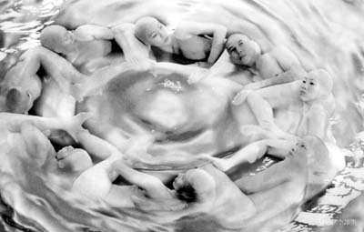 演出中婴儿油洒满舞台像波光粼粼的水域。