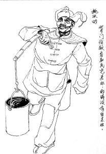 左:挑水工,那 时还没有自来水