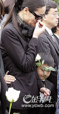 昨天上午9点,陈逸飞的墓碑在宋庆龄烈士陵园举行了简短而庄重的揭幕仪式,上海市副市长杨晓渡等市委领导、陈逸飞遗孀宋美英、小儿子陈天及《理发师》剧组的一些工作人员等出席了仪式。正处于陈逸飞遗产纠纷漩涡中心的宋美英在墓地一度泣不成声,遗产纠纷的另一主角、陈逸飞大儿子陈凛并没有出席昨天的揭幕仪式。据了解,陈逸飞墓碑上的碑文由余秋雨撰写,他写道:“他曾在劫后余生的文化断层间,找回浔阳遗韵的风姿、江南午后的宁静、小桥流水的思念,安顿了一代人浮躁的眼神和心灵……”