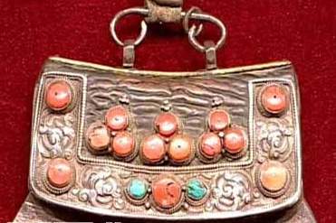 专家评述:这个火镰,它是藏族人民用来取火的工具,这个火镰更大的作用,它是一个装饰品,而且是达官贵人用的。在镰盖面上它有三组红珊瑚,每一组三个,三三得九,旁边是五个,三,五,九在藏文化当中,是非常吉祥的数字,所以在文化构想上,在艺术感觉上,材料选择上都绝非一般,是罕见之物。它的年代是清代中期,还有一个特别要给大家讲的问题,就是它的皮子,这个皮子藏话叫做“泽索”,“泽索”是一种,藏民认为很珍奇的动物,直到现在都没搞明白,翻译成汉话是什么动物,而且制成这种皮子的,工艺难度极大,基本上这个工艺,在西藏失传了,所以说它有三个价值,它的材料价值,它的工艺价值,第三个它的历史价值,所以说保守价3万。