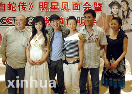 4月12日,《白蛇传》在浙江省杭州市举行见面会。《白蛇传》是继大型神话电视剧《宝莲灯》之后央视拍摄的又一部中国民间经典传说电视剧。这部电视剧将在今年“五一”黄金周期间播出。 新华社发(邵权达 摄)