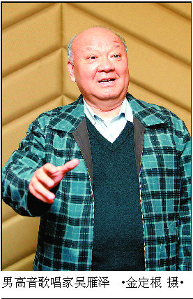 他向“学院派”进言:学到一定程度后,赶快走出课堂。不要急着上舞台,而是要冲向大自然和民间,充实歌唱的感觉和能力。现在很多充过电的歌手只注意了方法,反而弱化了歌唱本能。关于“原生态”歌手要不要充电,吴雁泽认为要“因人而异”。才旦卓玛跟王品素学了三年,得了技巧,本嗓也没丢,是成功的。但有些歌手说不定一教反而被“困死”了。他指出,并不是老师给的方法就是全部,什么时候都不能丢了自己的东西。
