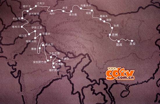 本次“重走唐僧西行路”大型国际文化交流活动的路线图