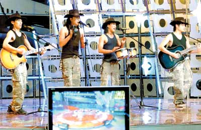 记者还了解到,“部落组合”刚刚成立不久,参赛前在深圳龙华酒吧驻唱。由沙伊健等4个彝族的小伙子组成,他们个个高大帅气,颇具音乐才华。早在深圳的决赛中,“部落组合”的演出就成为亮点,他们自弹自唱了原创歌曲《牧羊姑娘》,清新的台风,充满浓郁民族风情的歌曲,彻底征服了观众和评委的心。即使到了北京参加比赛,“部落组合”的表演也毫不逊色,像他们这样既有创作能力,又能弹唱的“组合”并不多见。两张鼓,两把吉他为他们加分不少。主唱沙伊健表示,这次参赛完全是以歌会友。比赛时,能发挥出自己的水平就够了。