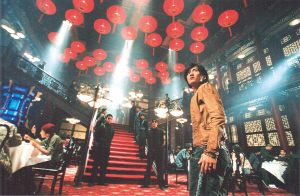 为了替影片加上一点香港特色,第二个主景设定为类似香港仔海鲜舫的港式茶楼。美指以红色为主色设计画舫的内部,从地毡以至墙壁都以不同深浅层次的红色布置,天花上更挂满鲜红色的大灯笼,营造港式茶楼的热闹气氛,跟日本餐厅昏暗而偏绿的灯光,形成强烈对比。而马坤跟罗刹女谈判的箱房内却放置了两个放出蓝光的灯笼。这个在现实茶楼中不会出现的道具,却恰好替马坤的角色添上一份肃杀凄冷的情调。