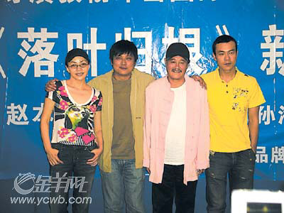 “老伴!三陪!”这是赵本山在呼唤宋丹丹。昨天下午,开机不久的张扬新片《落叶归根》(原名《落叶》)在云南昆明召开新闻发布会,戏里的这“老两口”索性将那里当成了舞台,你来我去地演起了现场版“二人转”。