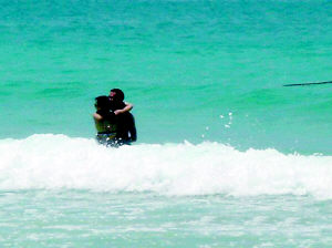 从四张“鸳鸯戏水图”来看,穿着泳装的邓超、孙俪举止非常亲密,又是牵手又是拥抱。照片上显示的日期是7月23日,据悉,两人的确在7月下旬去度假。那时候孙俪刚拍完《新上海滩》,而邓超也处于休息状态,由于这对地下情侣都喜欢海边,所以选择了三亚。其实邓超和孙俪已经不避讳两人的恋情,在北京的时候,两人经常在建外 S OHO或者国贸手拉手逛街,非常亲密。据知情人士表示,双方都觉得太高调会惹来炒作之嫌,所以他们希望有媒体拍到,“顺水推舟”再承认。据《东方早报》