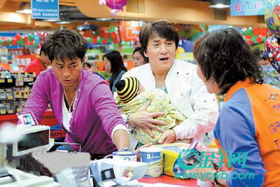 这个小宝贝是推动剧情的“核心道具”,但他的作用远远超过一个“物件”。这个千挑万选出来的婴孩,任何动作、笑容、表情都是可爱、逗趣的———这点和电视广告中的那个“婴儿模特”没有区别。比“婴儿模特”价值高的地方,就是编导每每利用婴儿来制造高空跌落、大路追车等惊险场面,就影院观众(尤其是女性观众)的反应来看这招屡试不爽———远比成龙亲身制造的最高难度的动作戏还要刺激百倍。当然这婴儿另外还应该起到的作用是:感化。如何令“人字拖”(成龙)、“百达通”(古天乐)从顽固不化的窃贼,转变为“知荣知耻的新人”,也是这个婴儿的任务。也就是说,这个婴儿应该起到喜剧、惊险、情感三重作用。而从电影来看,最后这层效果被渲染得过于生硬,令角色情感转变过于突兀(这也是华语商业片里面的通病),所以才会让影片最后主角们的独白听上去很肉麻。