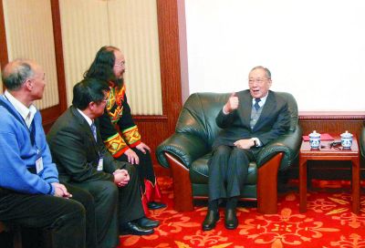 19日晚,原中共中央政治局常委、原国务院副总理李岚清在北京天桥剧院观看了大型原生态民族音乐集《云岭天籁》并与主创人员亲切座谈。