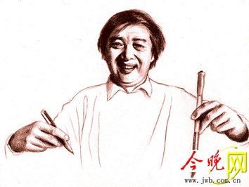 图为手拿两只笔的大冯 (铅笔画)杜仲华画