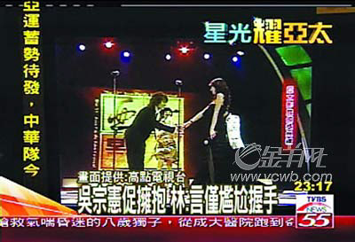 走红地毯时言承旭没有和林志玲携手进场,但在台上却是大方相会。作为颁奖嘉宾,言承旭以一套黑色西服出席,刚好林志玲当时也换了一套黑色礼服与之搭配成“情侣装”。“你好!”言承旭轻握住林志玲的手打招呼,在众人的起哄下,林志玲禁不住脸红起来。当言承旭收回手时,林志玲后退一步,以鞠躬还礼,言承旭情急之下赶紧上前扶起她,其窘迫状再次引起全场大笑,包括同是颁奖嘉宾的周迅。