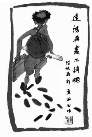 值得一提的是,新版《沿着塞纳河到翡冷翠》还收入了黄永玉先生特意设计的藏书票:一位老人,肩负背囊,手提画箱,跋涉在漫漫旅途中。旁边是陆放翁的诗句“远游无处不销魂”。看过黄永玉先生的文与画,翻过来再看黄裳先生的序,便能体会黄裳先生所言“得一大白”的意兴。