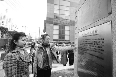 虹口大戏院遗址立标志 东方网-文汇报 2007.01.0808:35 关注 在电影发明不久的1917年,中国首家向社会开放的营业性电影院——“虹口活动影戏园”(1919年更名为“虹口大戏院”)揖客。1998年,由于海宁路拓宽,“虹口大戏院”被拆除。日前,其遗址纪念性标志在海宁路乍浦路口立起。上图:市民在看“虹口大戏院”遗址介绍。 刘定传