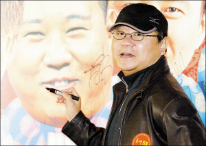 没赶上看电影的贾樟柯特别出席了酒会,他称张扬为“我们这堆人中的票房英雄”,而且对媒体表示19日肯定会花钱去看《落叶归根》。张扬也笑眯眯地说:“我也没赶上《三峡好人》的首映,等我打算去影院看的时候,影片已经下线了。我一定去买张DVD。” (本组照片由李彬摄)