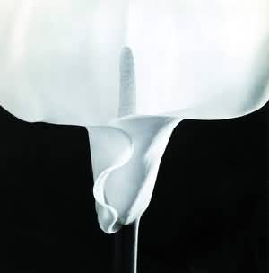 除了大量情色照片,梅普尔索普还拍了一些堪称经典的花卉。大片的黑暗背景,衬托出被光线精心照亮的一朵绽放的马蹄莲,或者百合、罂粟,画面十分纯净。像波浪一样,花瓣是优美曲折的,妩媚生动,一茎花蕊从花心悄悄探出,如孤云出岫,时而羞怯柔弱,时而挺拔骄傲。我们既感受到花卉的沉静冷艳,孤芳自赏,又察觉一种危险的魅惑,一种被脆弱的理性约束的黑暗欲望。骨子里,那些花是妖冶的,诡秘的。