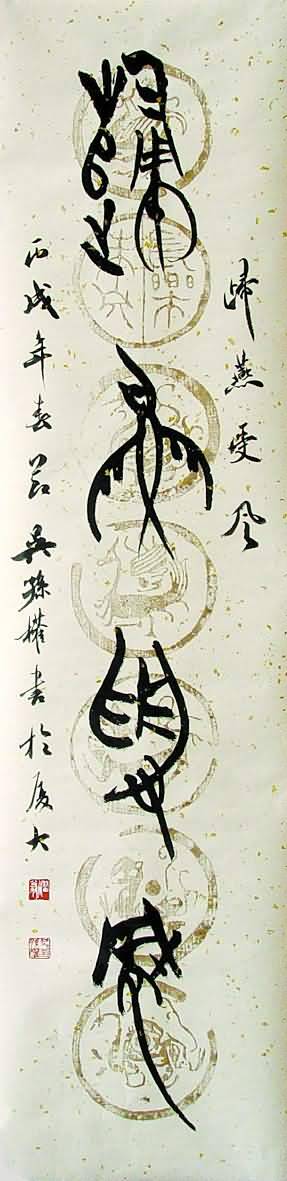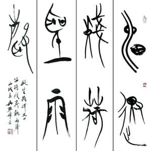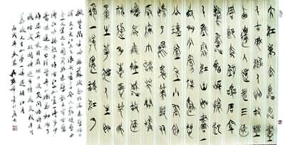 吴孙权先生书法楷、行、草、隶、篆五体兼擅,近年来倾心研究楚简,以其考古学专业优势,将这种已经灭绝两千余年的珍贵文字化为书法创新的源泉,写出独具个人风格的楚篆。在拓古创新方面,他的探索对于国内书坛具有重要意义。