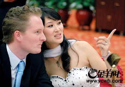 上图:第八届选手顾吉芳大腹便便地携法籍丈夫一起“回娘家”
