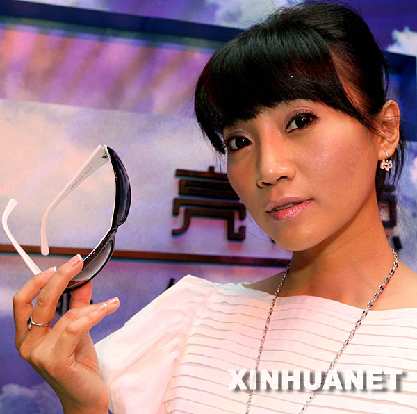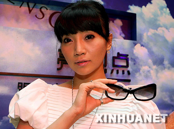 6月6日,名模李学庆在北京王府井一商场内展示一款防紫外线太阳镜。当日是全国“爱眼日”,歌手朱桦在一场宣传活动中,提醒现场观众注意紫外线防护,保护眼睛。 新华社记者 陈建力摄