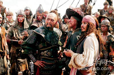 上图:周润发在《加勒比海盗3》中戏份被删了十分钟