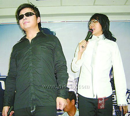 昨天中午12:00,国内一线组合“水木年华”带着他们的新专辑《双重幻想》来到了昆明百汇新知图书城,为广大昆明歌迷进行了现场签售。热情的歌迷不仅得以和“水木年华”亲密接触,还看到一场别开生面的“水木年华”小型演唱会。晚上8:00“水木年华”还在玉溪体育馆举行了一场精彩的专场歌友会。