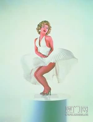 他把美术史上的名作糟蹋一遍后,又开始消遣流行文化中的影视女明星。1996年,他在横滨美术馆举行了个展《病之美——成为女影星的我》。天知道他如何化妆的,反正他扮演的玛丽莲·梦露、英格丽·褒曼、费·唐娜薇、伊丽莎白·泰勒、山口百惠,都有模有样。梦露双手压住风掀起的裙子那张,远看也性感撩人,近看神态僵硬,想到脂粉下面是一个男人,恶心得很。也许这就是他要的效果。