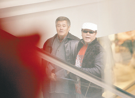 早上8时,赵本山和范伟开始化妆造型。本山穿的羊绒外套本身就是自己的行头,倒是头戴白色前进帽、架着墨镜、穿着貂绒的范伟“全副武装”之后,引得剧组工作人员哈哈大笑:“范老师,您这打扮也太带劲儿了,往王小蒙跟前一站,保管让她动心!”范伟嘿嘿一笑:“是吗?那到时候你们别忘了给我美言两句。”玩笑话说完,剧组马不停蹄前往商场开始正式拍摄。