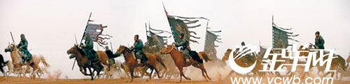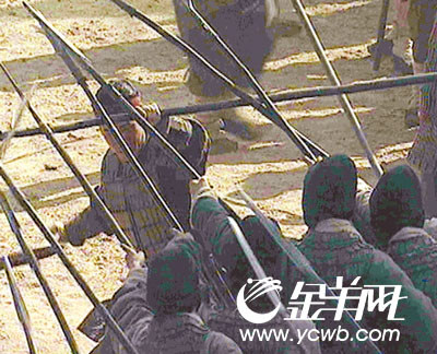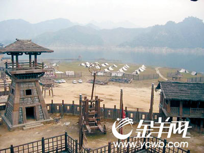 昨天,《赤壁》剧组在易县水库搭建的主场景“曹营大寨”终于在电视上露脸。曹营就建在一个被群山环抱的大水库旁,满地黄土,地势凹凸不平。《赤壁》制片人称,这个主场景本来要建在长江边,但因种种原因而最后定在离北京较近的河北。也就是说,这个水库就将是电影里看到的那条在三国时代滚滚东逝的“长江”。