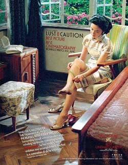 信报讯 李安导演的《色,戒》入围被喻为奥斯卡奖项指标的芝加哥影评人协会奖,表明该片已正式进军北美。同时为了迎接以奥斯卡为核心的颁奖季,《色,戒》曝光一系列新款海报。