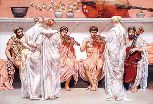 上海美术馆执行馆长李磊为观众推介了其中两位画家的展品:陈列于显著位置的约瑟夫·摩尔的《四重奏:一个画家对音乐艺术的赞颂》。约瑟夫·摩尔是英国维多利亚时代著名的、具有唯美主义倾向的古典主义画家,大部分作品都以古希腊和古罗马的休闲人物为主角。作品在寻求音乐与美术之间联想的同时,用绘画方式表现出某种“音乐的特性”,充分表现了画家在调理线条和色彩搭配上的创造力。他的《夏夜》描绘了倦怠的妇女身穿古希腊服装,半裸着身体,或坐或卧,或悠然梳妆,悠闲而懒散,色彩并不华美,但具有独特性和整体和谐。