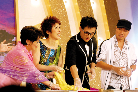 现场演员们受邀上台玩游戏,李司棋、关菊英、黎耀祥等饼铺“骨干”要在一分钟内将面粉搓成一个月饼,谁最接近100克谁就赢。结果被看好的李司棋“大热倒灶”,反而是“莲子蓉(角色名)”黎耀祥成功胜出。