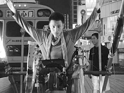 《门》中陈坤在解放碑被撞飞B轻轨 代表作:《疯狂的石头》、《门》