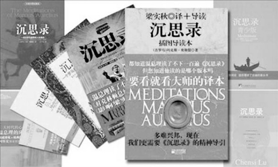 记者在书店里看到,《沉思录》的版本多达十几种,仅何怀宏翻译的《沉思录》就有三个版本:三联版、中央编译局出版社版、陕西师大版。其中三联版估计保留了原作的风貌,只是按卷编目,各卷中的自然段皆用序号标识;中央编译版则除以原有卷号编目外又在各卷中归纳出小标题;而陕西师大版除了和中央编译版的雷同外,还有不少插图,简单对照就发现这个版本的序言不完整,错字、漏句都有,感觉粗糙。
