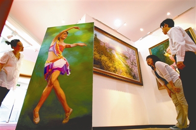 目前,朝鲜最大规模的美术团体——万寿台创作社推出的“朝鲜现代顶尖艺术家画展”正在北京华朝画廊展出。展出的一幅油画作品上,美丽的朝鲜姑娘翩翩起舞。该展览展出的200多件艺术作品中包括油画、水彩画、版画以及高丽青瓷、朝鲜刺绣等,展览将持续到5月22日。