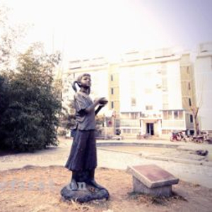 金鱼池危改工程完成后,老舍先生的半身像也被竖立在了金鱼池中街南口。老舍先生憨厚的笑容,每天伴着匆忙的人们,一如既往地注视着这条街和这段历史。