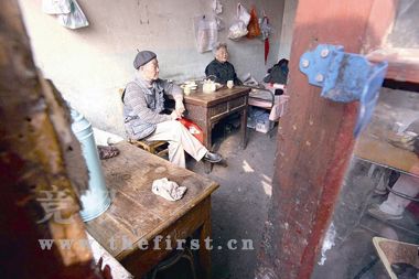 2007年10月30日,爆肚张第三代传人张耀兴和老伴儿在店后的小屋内休息。