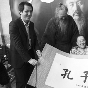 作为著名女书法家,孔德懋还特意为电影题词“孔子”,并赠送给了剧组。随后,导演胡玫邀请她欣赏刚拍完的一组镜头时,孔德懋坐在监视台前,一会儿看看镜头里的孔子,一会儿看看身边的周润发,然后不停地点头。见孔女士如此认可,发哥也松了口气:“您要是喜欢,以后可以去电影院看。”孔德懋马上回答他:“一定会,一定会。”孔德懋说,她看过周润发之前的很多电影,一直都是他的影迷:“让你来演孔子,是不会错的。”