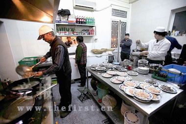 2009年2月13日,爆肚张现在的掌门人张子安正在后厨掌勺。