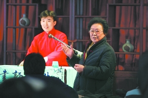 据连丽如介绍,今后东城区文化馆的评书展示表演将固定在每周日下午2时30分开始,作为口头文学的非遗代表,连丽如不仅想传承北京评书,还想陆续推出其他曲艺形式的非遗项目,原本想昨天登台的西河大鼓书就是其中之一,“我本来邀请了西河大鼓书表演艺术家贾莲芳来表演《杨家将》,但她前几天生病住院了,老人家都77岁高龄了,还是等开春暖和了再让她来吧”,连丽如说。尽管年纪大了,但贾莲芳的艺术水准丝毫不受影响,据连丽如介绍,贾莲芳曾是宣武说唱团的演员,14岁就登台表演了,是国宝级的老艺术家,“老人家现在依旧思维敏捷,口齿清晰,说上一个钟头没有任何问题”。WJ132程功摄