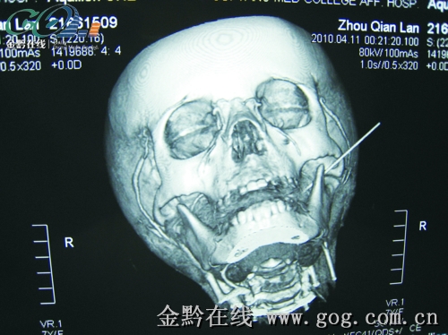 昨日,贵医附院小儿外科陈医生介绍,当晚10点,孩子被送来后,院方立即组织专家会诊,并动用了国内最先进的CT设备,对小孩头部进行仔细检查。