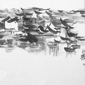 而王龙生作品的另一大特色,从此次参展的这幅《暮色》中就可以看出:在暮色中,小河旁,一株开满了轻盈白花的小树。画面中,你看不到亮丽、浓烈的色彩,只有黑、白、青灰等淡雅的冷色,这种压抑色调的做法,虽然从直观上降低了视觉的感受,却强化了精神深度,画意更为深远。