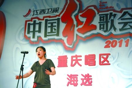 本报讯(记者 夏洪玲)昨日下午两点,由重庆广电集团与江西卫视共同主办的“2011年中国红歌会”在重庆师范学院虎溪校区举行了重庆赛区的首场海选活动。经过近3个小时的激烈角逐之后,仅4名学生获得了“直通证”,将备战6月份的晋级赛。现场最让人感动的是一名来自大连的大学生,坐了20多个小时的火车赶到重庆报名。据主办方透露,第二场海选活动将于5月29日在日月光中心广场举行。