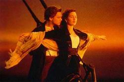 虽然逃生的知识讲得不多,但《泰坦尼克号》中爱情的分量却是最足的,占了三小时里的70%。在《泰坦尼克号》风靡的年代,更多的人把片中杰克和罗丝的爱情比做神话中的神话,这一点单是从那些成双成对、相偎相依跨入影院看《泰坦尼克号》的人就能看出。而影片中的那几个经典镜头,杰克为罗丝作画、在优美的音乐中二人相拥在船头展臂吹海风等等,都成为了当年热恋中的情侣及电影的效仿对象。而到了影片结束的时候,海难已经成为了整个故事的背景,杰克和罗丝情比金坚的爱情才是重点,一个人可以为了另一个人牺牲一切,这才是《泰坦尼克号》的真谛。