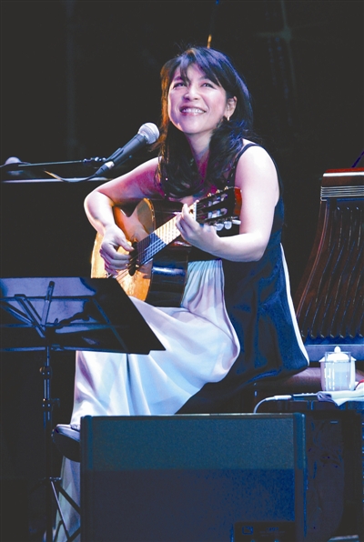 一袭长裙,一把吉他,小野丽莎与观众开始了一段波萨诺瓦之旅。 信报记者 苏冠名/摄