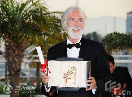 五番征战戛纳之后,67岁的迈克尔·哈内克终于凭《白丝带》赢得了戛纳的至高荣誉。2001年,《钢琴教师》为迈克尔·哈内克赢得了戛纳电影节评委会大奖。2005年,他再度凭借《隐藏摄像机》赢得戛纳电影节最佳导演奖。昨日,当评委会主席于佩尔将金棕榈奖递向哈内克的一刹那,她紧紧拥抱了这位长者。