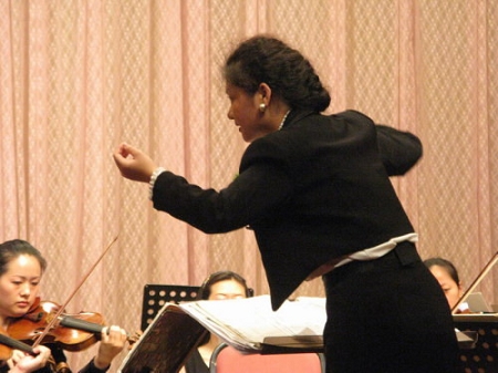 夜里3点半入眠,早晨8点即起床的张女士告诉我,这不算什么,郑老师那才叫厉害,一人身兼指挥、行政、勤务员、调度等诸多职务于一身。老太太拉肚子半个月不倒,去重庆指挥仨小时,好了!手上打吊瓶打得肿成包子,拔了针头就跑到音乐厅,没事人一样。“我们每个人都很敬重她,80岁了还这么拼命,20岁的怎么好意思闲着?”张丽达说。